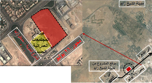 بمساحة 18 فدان ومن المتوقع أن يوفر المشروع عمالة دائمة حوالى 400 فرصة عمل و حوالى 45 ألف فرصة عمل مؤقتة أثناء التنفيذ